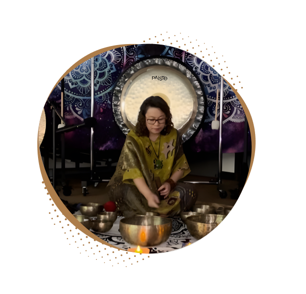 Her signature approach, Seven & Twelve Resonance™, merges ancient Chinese meridian wisdom with chakra harmonization and authentic Full Moon Singing Bowls to guide others toward deep physical, emotional, and spiritual healing.